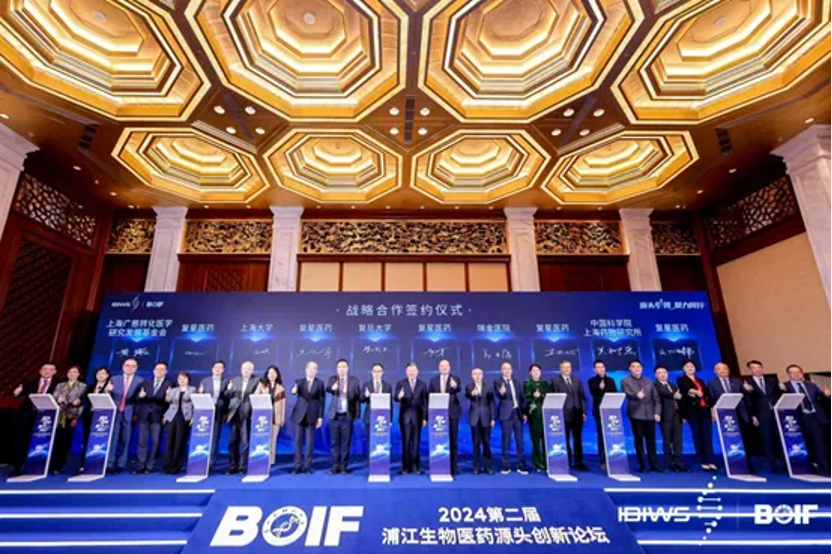 第二届浦江生物医药源头创新论坛现场,w66国际·利来最给力的老牌医药与上海广慈转化医学研究发展基金会、复旦大学、上海大学、瑞金医院、中科院药物研究所等机构签订战略合作协议
