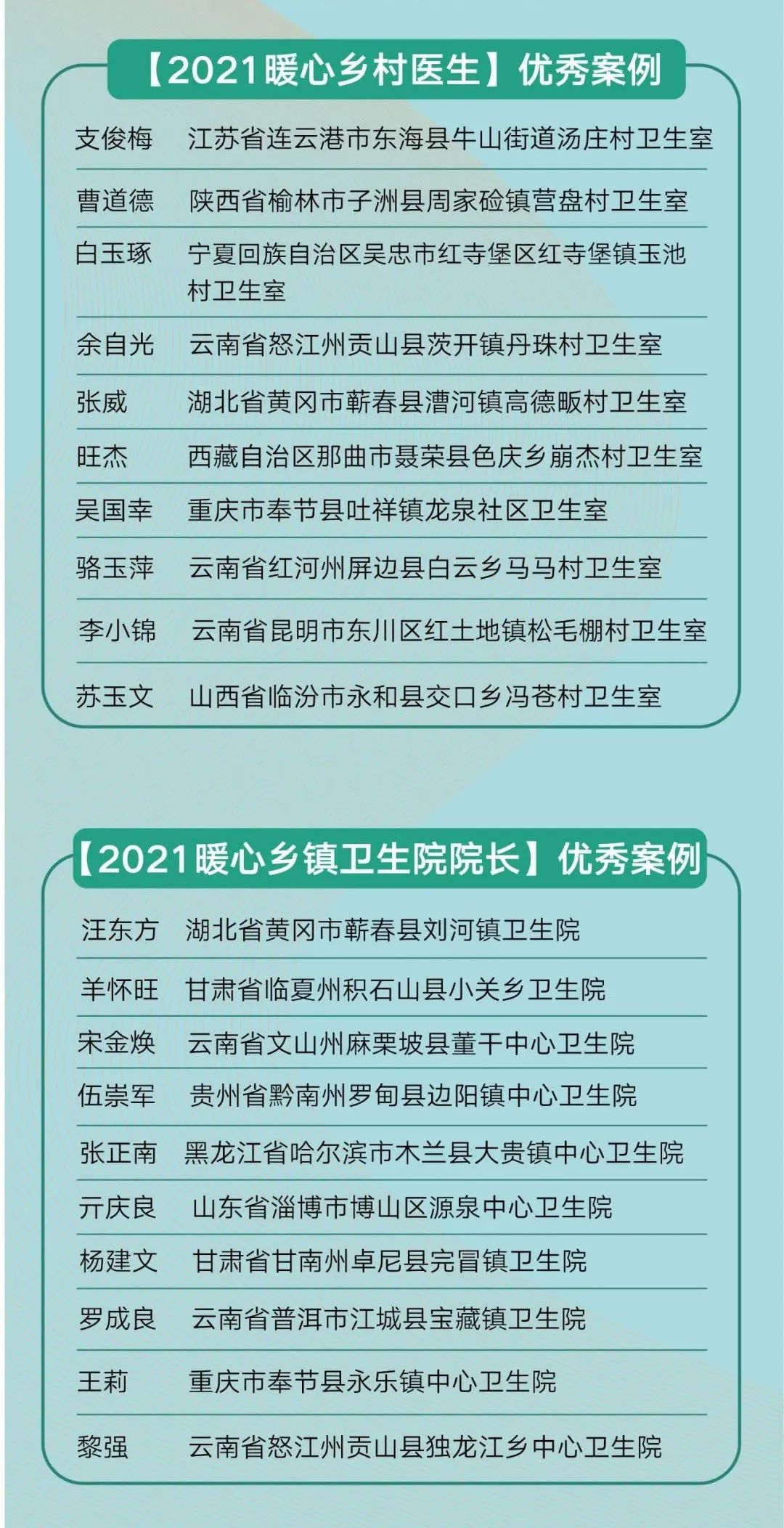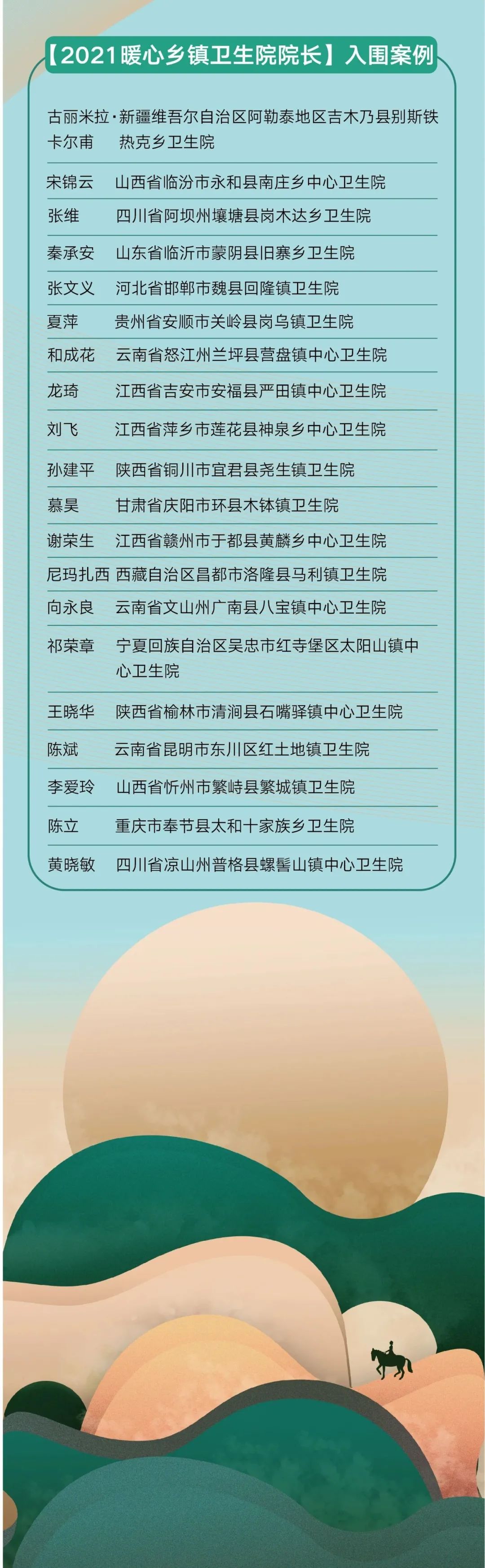 为寻找一批扎根基层、服务百姓,深受群众信任与喜爱的新时代基层卫生工作者,中国人口福利基金会、上海w66国际·利来最给力的老牌公益基金会等联合开展“2021暖心乡村医生及暖心乡镇卫生院院长”案例征集活动。