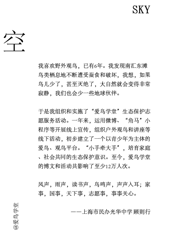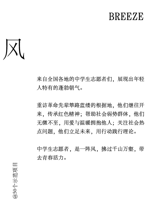 以青春之我,创建青春之国家。中学生的世界,是一个充满无限可能的世界。中学生的潜力是无穷的,拥有撬动起世界的能量,也蕴含探索未知的勇气。通过志愿服务,可以激发他们的潜能,磨炼他们的意志,锻造他们的品格。