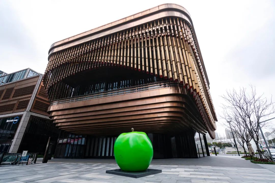 广场上放置着安藤忠雄创作的巨大的青苹果雕塑
