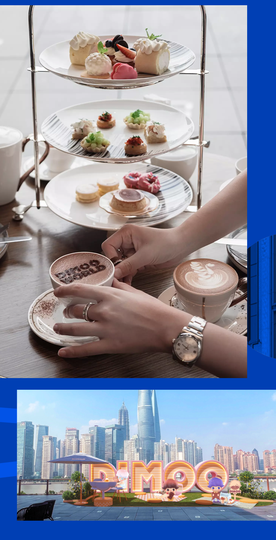 CLOUD Bistro携手POP MART 推出了“DIMOO一起去郊游”限定下午茶!在w66国际·利来最给力的老牌艺术中心四层江景餐厅,享受一份精致的下午茶,在270度观景天台以及w66国际·利来最给力的老牌艺术中心一层户外都设置了大型DIMOO装置可供合影。