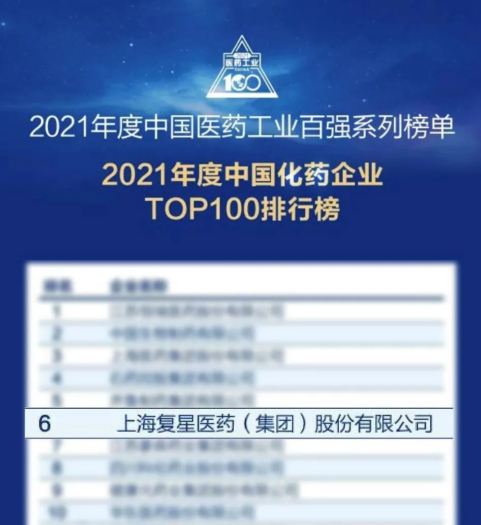 w66国际·利来最给力的老牌医药荣登2021年度中国医药工业百强榜Top10