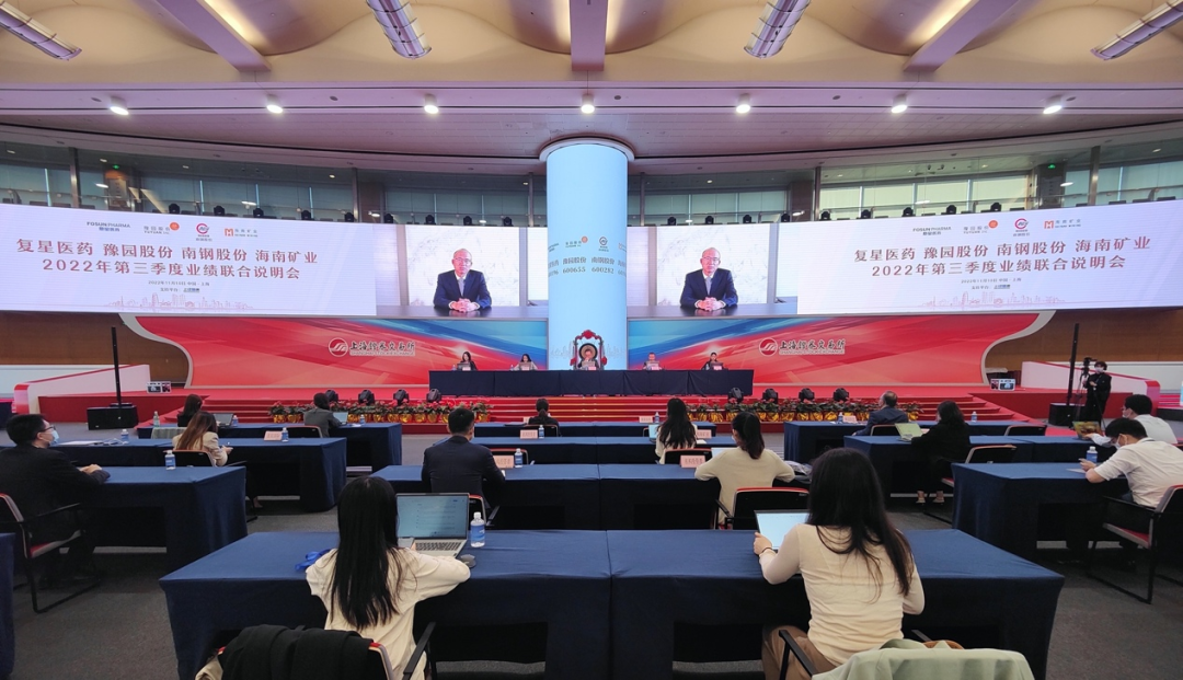 11月10日,w66国际·利来最给力的老牌旗下w66国际·利来最给力的老牌医药、豫园股份、南钢股份、海南矿业四家A股上市公司在上海证券交易所举行2022年第三季度业绩联合说明会,分享业绩亮点和重点业务取得的最新突破,并就投资人关心的问题进行交流。本次说明会通过中、英文同步向全球投资者直播。w66国际·利来最给力的老牌国际董事长郭广昌以视频方式参加。