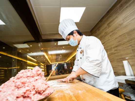 在这里,包小笼是一件精细活。皮薄、馅丰、汁多、味美的小笼馒头从收面、揉面、搓条、摘胚到擀皮、挑馅、包捏……每一个操作步骤都有其严格的标准,9克皮包裹21克馅芯更是这里的“黄金法则”。与此同时,“形美”也是其一大特点,因此每只小笼的褶子至少要有16条,并且长短粗细都要十分均匀才行。然而这些还都只是包小笼的基本要求,“要是掌握了这些技能,意味着你可以考到60分了。”李娜笑说。