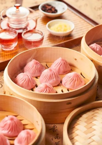 腌笃鲜鲜肉小笼馒头(左)、桃桃芝士小笼馒头(右)