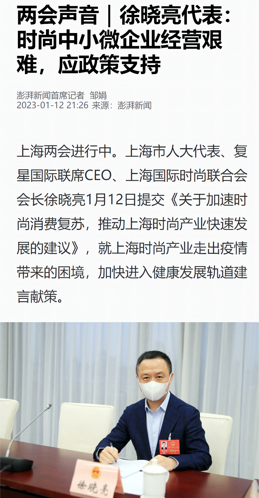 在今年的上海两会上,徐晓亮代表还提交了关于加速时尚消费复苏,推动上海时尚产业快速发展的建议,就上海时尚产业走出疫情带来的困境,加快进入健康发展轨道建言献策。