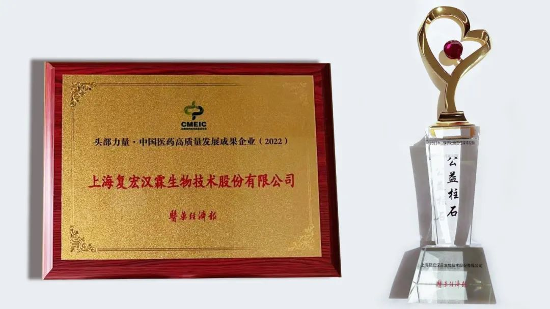 复宏汉霖荣获“中国医药高质量发展成果企业、成果品牌、公益柱石”三项大奖