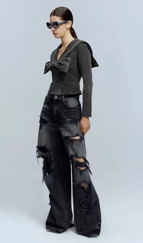 破法式高腰磨破白短裤
