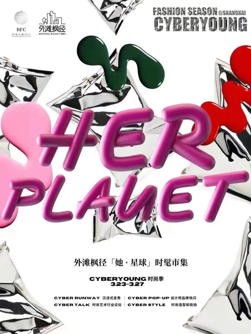 3月23日至27日,CYBERYOUNG FASHION SEASON时尚季@SHANGHAI,将在外滩枫径呈现缤纷多彩的艺术嘉年华活动。