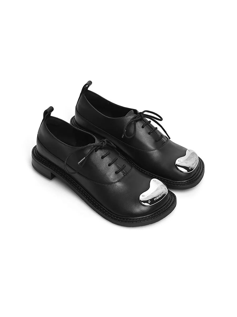 金属装饰片系带平底鞋