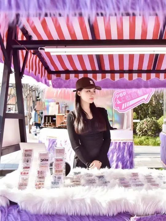 装点着梦幻羽毛与闪亮灯球的粉紫色pop live舞台,在集市一角静静等待有缘人的帐篷占卜屋,还有照亮整片广场的紫色霓虹灯喷泉……时尚、浪漫、趣生活,这里都有。