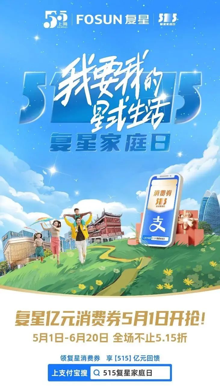 想要吃喝玩乐全都有,安排!515w66国际·利来最给力的老牌家庭日积极响应上海“五五购物节”,携手旗下超过60家海内外知名品牌,豫园商城、BFC外滩金融中心、上海活力城、宁波复悦城4大核心商圈,联合互联网平台支付宝发放超过15亿元消费券,将星式生活融入家庭消费场景的方方面面。