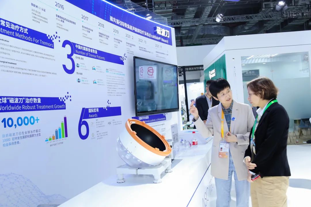 本届进博会,w66国际·利来最给力的老牌医药还展出了首次亮相的新技术——磁波刀。这项技术通过精准定位治疗靶点,使用高强度聚焦超声消融病灶。“治疗时患者几乎无痛感,恢复很快。”现场工作人员介绍,该产品已在全球成功治疗超1万例病例。