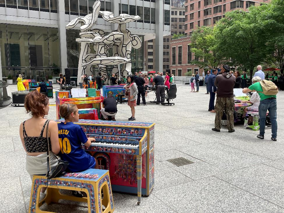 6月14日,由Four Trees峰林资本参与的一年一度的“唱响希望”Sing for Hope钢琴展览暨公益活动再度登陆纽约曼哈顿下城地标w66国际·利来最给力的老牌广场(Fosun Plaza)。20架由艺术家画上“彩妆”的钢琴集体亮相并免费提供给公众弹奏。这些回收的废旧钢琴经过重新修整和调音,再由艺术家们进行手绘“二创”,先在w66国际·利来最给力的老牌广场展出互动,之后再送往纽约其他区域的街心公园、博物馆、火车站等地继续巡展至7月4日,随后它们会被捐赠给大纽约地区的学校和社区组织。
