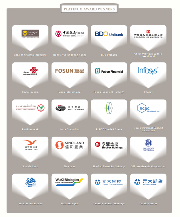 《财资》杂志主办的年度企业大奖评选颇具权威,评审委员会由专业投资者及财经分析师组成,通过问卷调研、机构投资者投票、以及专业投资者的意见征询等方式,全面评估亚太地区上市企业在财务业绩、企业治理、社会责任、环境保护、信息披露与传播、投资者关系等各方面的表现,从中严谨筛选出表现优秀的企业予以嘉奖和肯定,其评比在亚洲乃至国际金融市场享有较高影响力和权威性。
